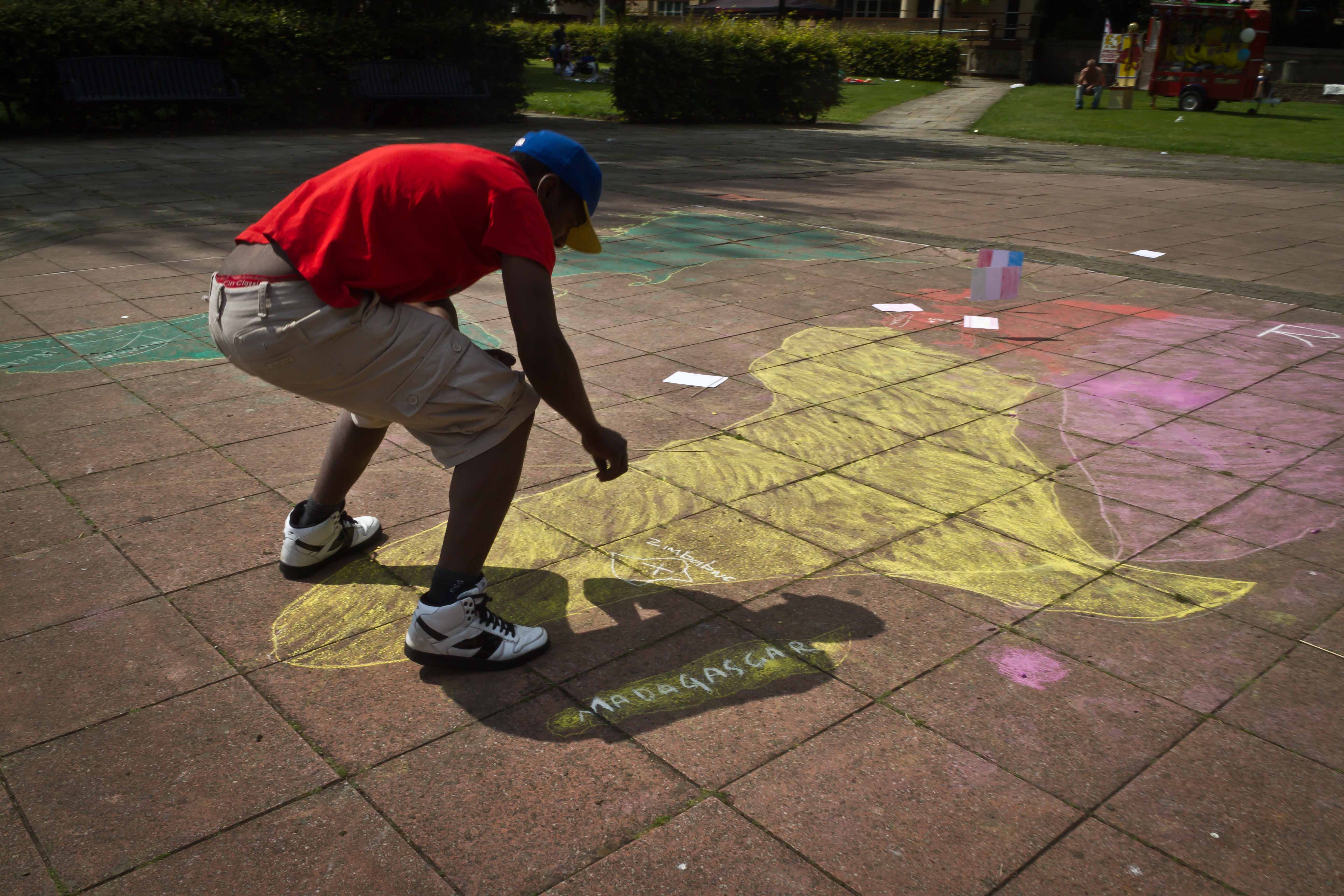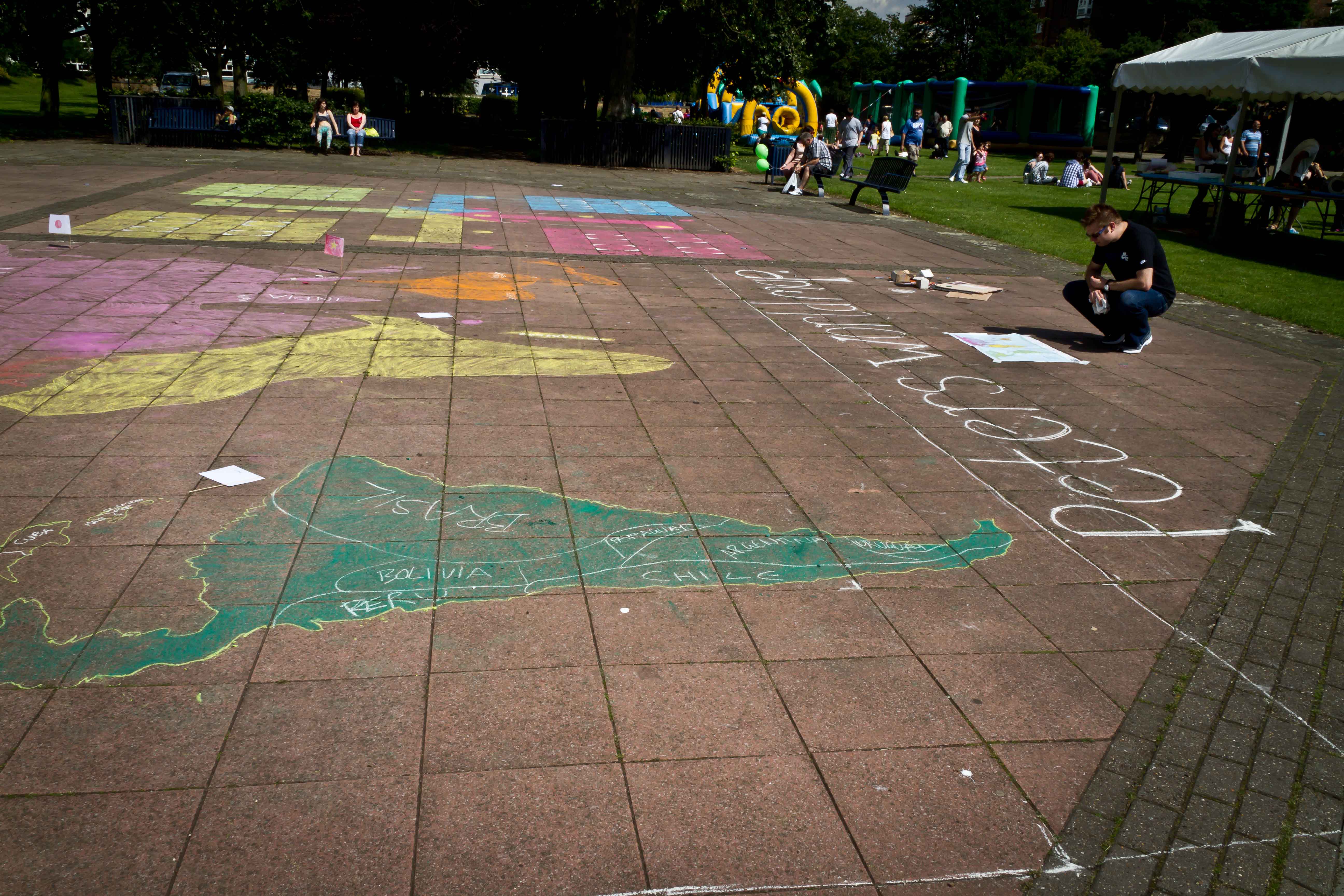 The earth is round. The challenge of any world map is to represent a round earth on a flat surface. Peters Map tries to redress this issue – by showing us an area accurate map of the world – of course in Peters Map Europe is still in the middle at the top – a legacy of the Eurocentric view of the world dominated by western culture and thinking. These were just some of the issues that came up for discussion – with participants in this map drawing event – my friend the illustrator and educator Gareth Sleightholme suggested that if you placed the Pacific ocean in the middle you would have a more representative and less hierarchical map – which I tend to agree with.